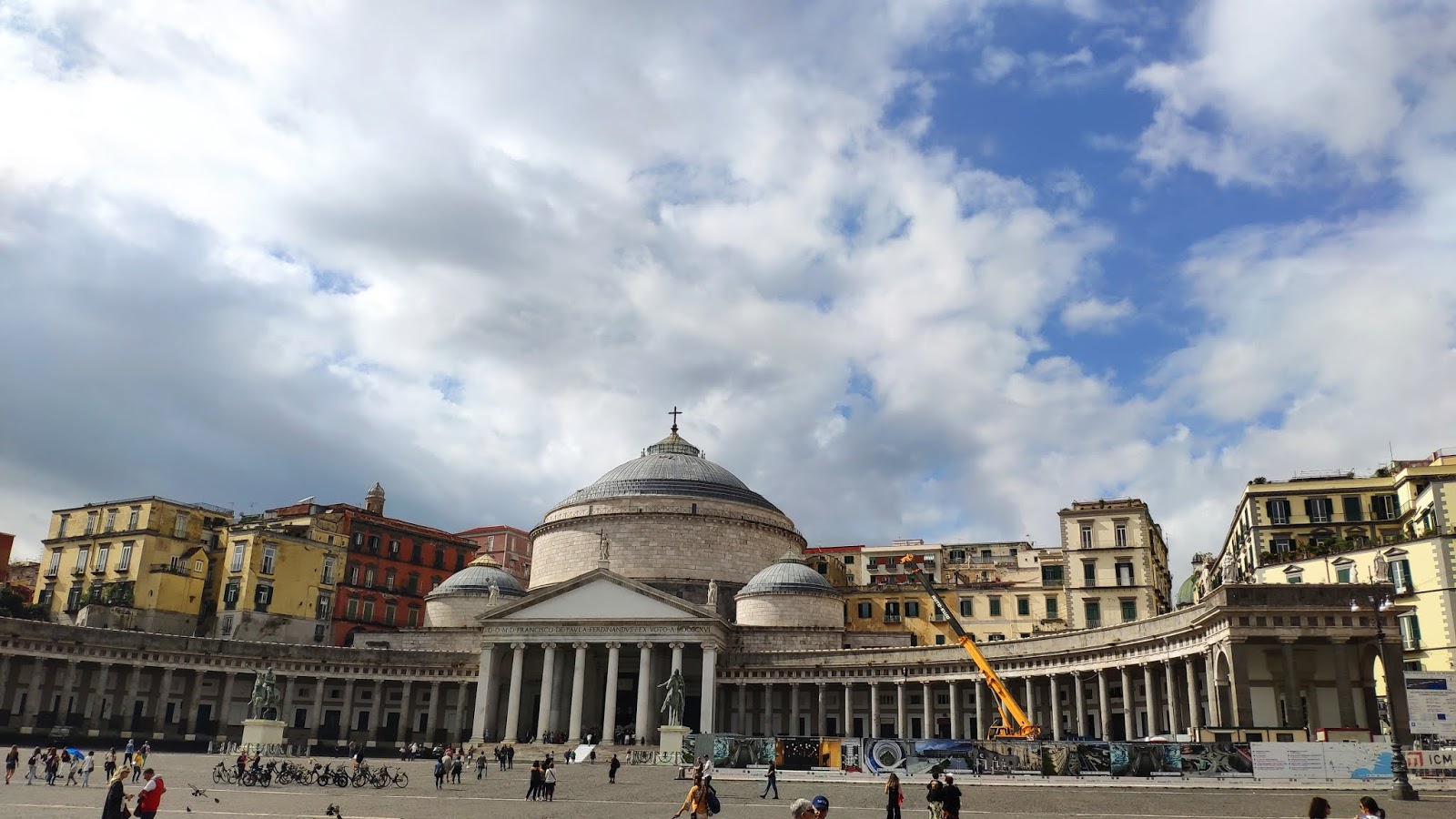 Visita a piazza del Plebiscito con il Palazzo Reale e la basilica reale pontificia di San Francesco di Paola, che ricorda il Vaticano.